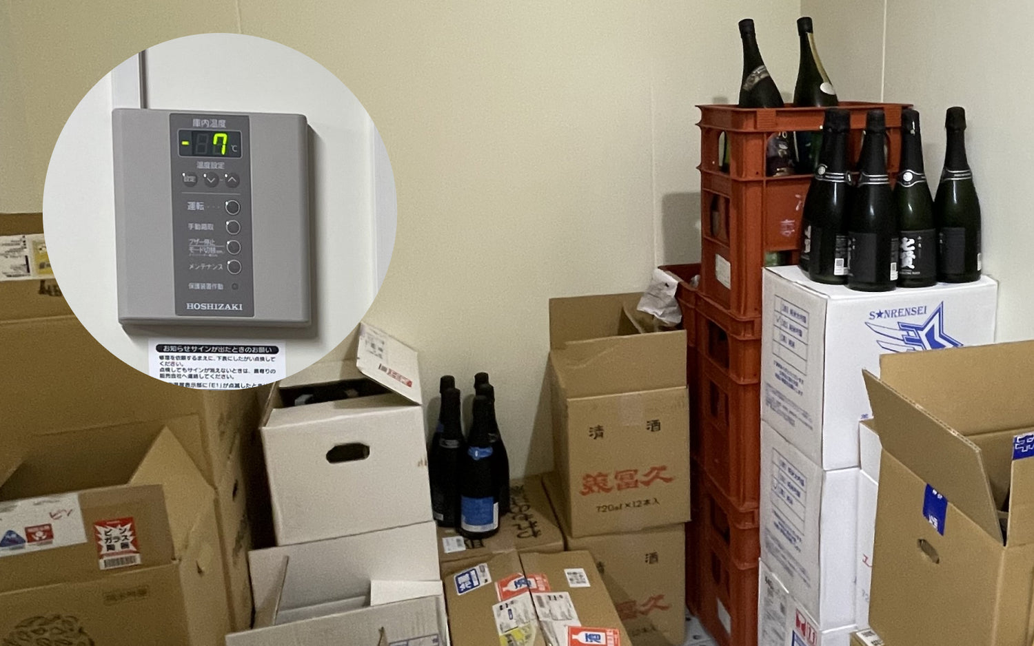 お酒の理想的な保管温度であるマイナス7〜5℃で管理することで、味わいの劣化を防ぎ、日本酒本来の輝きを保ち、お客様に提供しています。